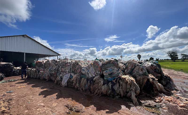 カンボジアにおける処理待ちのプラスチックの山