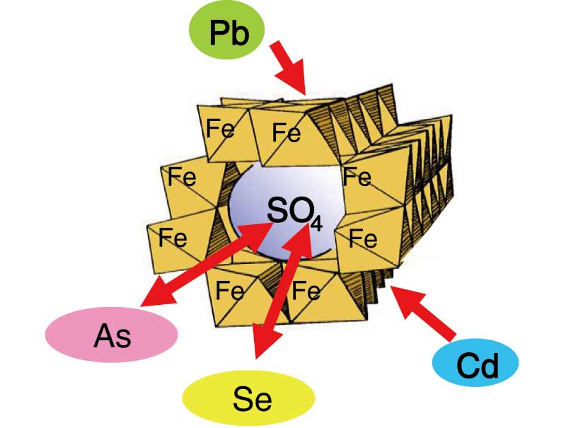 シュべルトマナイト系不溶化材の重金属吸着イメージ